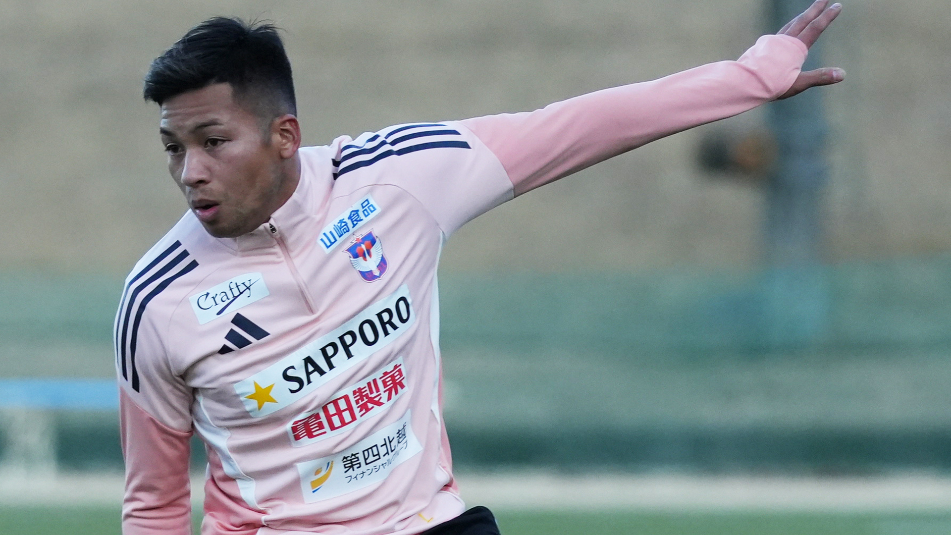 ゲーム形式で左サイドの攻撃的なポジションに入ったシマブクは、持ち前のドリブルで果敢に前をうかがっていました。しかし、ゲーム途中の接触で、足の甲を抱えるようにうずくまり、ピッ