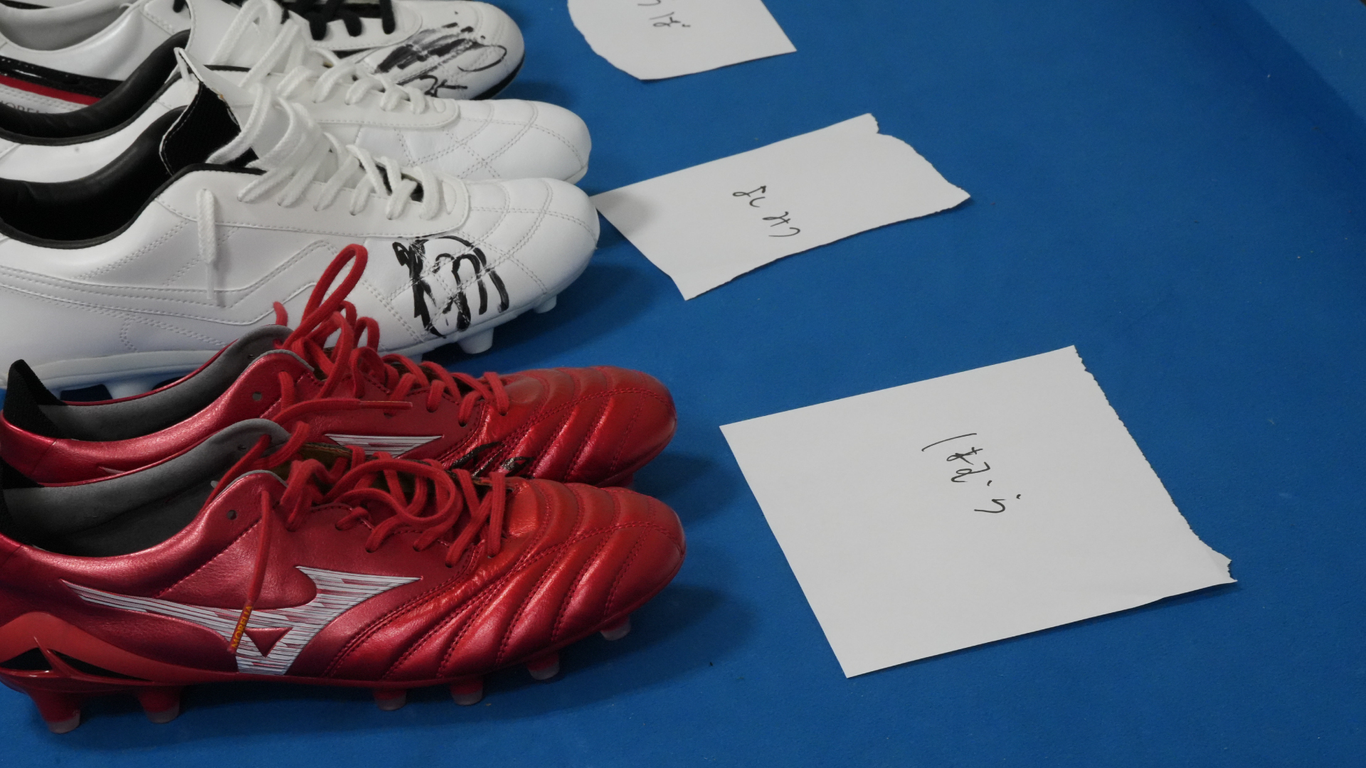 J1リーグが約2週間の中断期間を設けている中、チームは試合感覚を維持するため、通常よりも高い強度のトレーニングを続けています。今日は、聖籠町へふるさと納税に多大な協力をしていただいた、約10名のゲストをクラブハウス内にお招きしました。和やかな雰囲気の中、ジムで軽めのトレーニングをこなしたのちに、キャプテンがすすんで自身のレガースをゲストへプレゼント。それに続いて、選手たちは次々とスパイクや、キーパーグローブをロッカールームから持ち出し、その場でサインを書くと、『好きなものを持って帰ってください!』と、大盤振る舞いを披露してくれました。